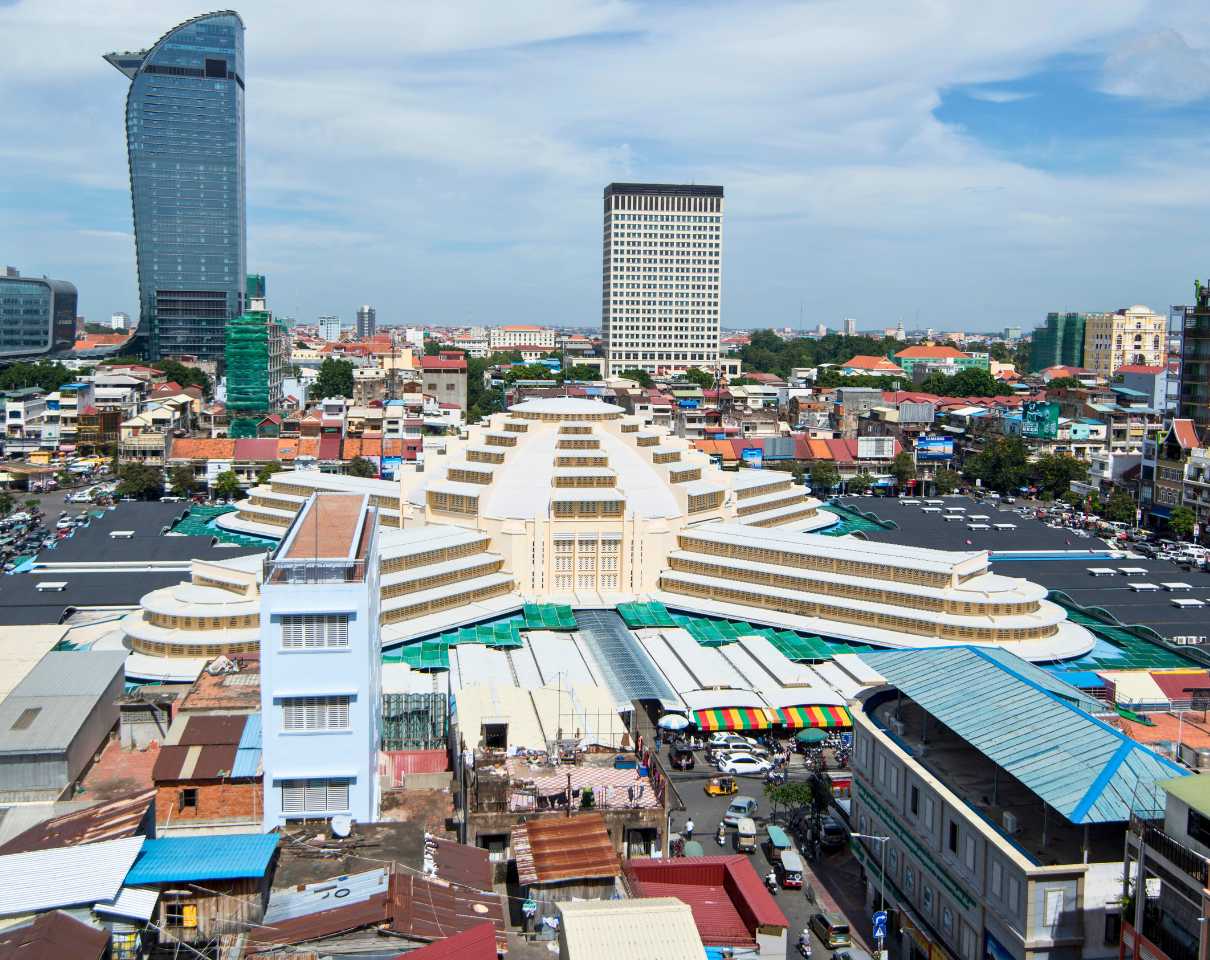 Completed in 1937 during the French colonial era, Central Market was once the largest market in Southeast Asia. Its bold Art Deco design domed center with four wide wings—still stands out today. The structure was engineered to keep the market cool and airy, even on Phnom Penh’s hottest days.